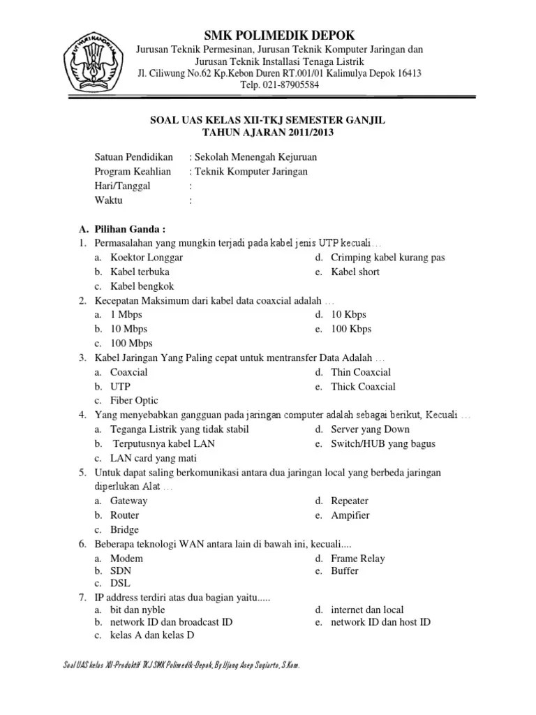 Contoh Soal Tkj Kelas 10 Semester 1 : 50 Contoh Soal Tkj Kelas X Pilihan Ganda Dan Jawabannya Manglada Tech / Windows xp sp3 merupakan salah satu nama produk dari … answer choices.